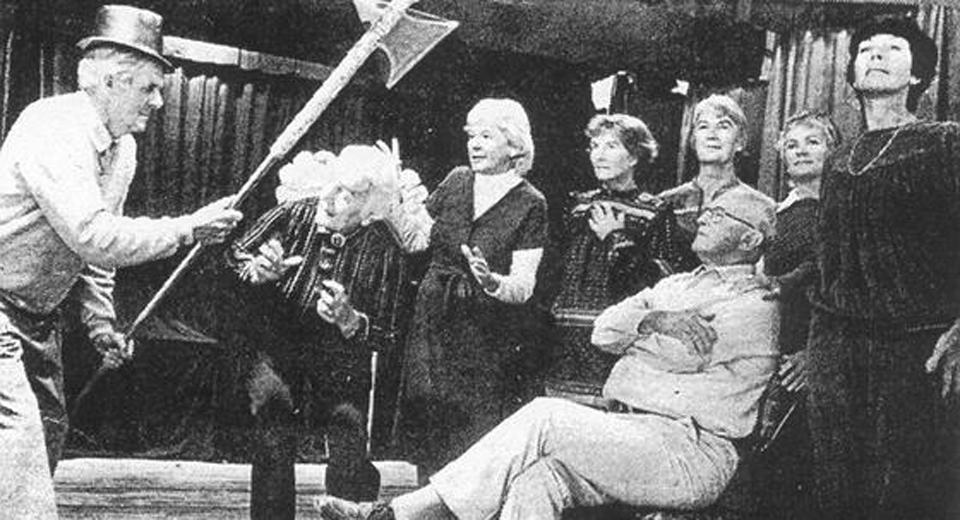 Then it all started.  Cooroy builder, Colin Koch, undertook the work of re-siting the shed on a concrete slab and adding the small kitchen, dressing room and two toilets under the supervision of Brian Murphy as architect, Ken Lawrence as surveyor and Jim Cameron as engineer.  Electrician, Doug Matters, attended to the theatre lighting.  Assistance also came from local service clubs; Apex, Lions, Rotary and Quota.  Professional services were given free of charge or at reduced rates.  A call went out for egg cartons to insulate the building, strips of hessian were used as camouflage.  (These are still inside the internal auditorium walls today!)  With the building barely ready for occupation, Puss In Boots, written and directed by Marjorie & Arthur Harrold, was staged in the new theatre with a cast of forty.
