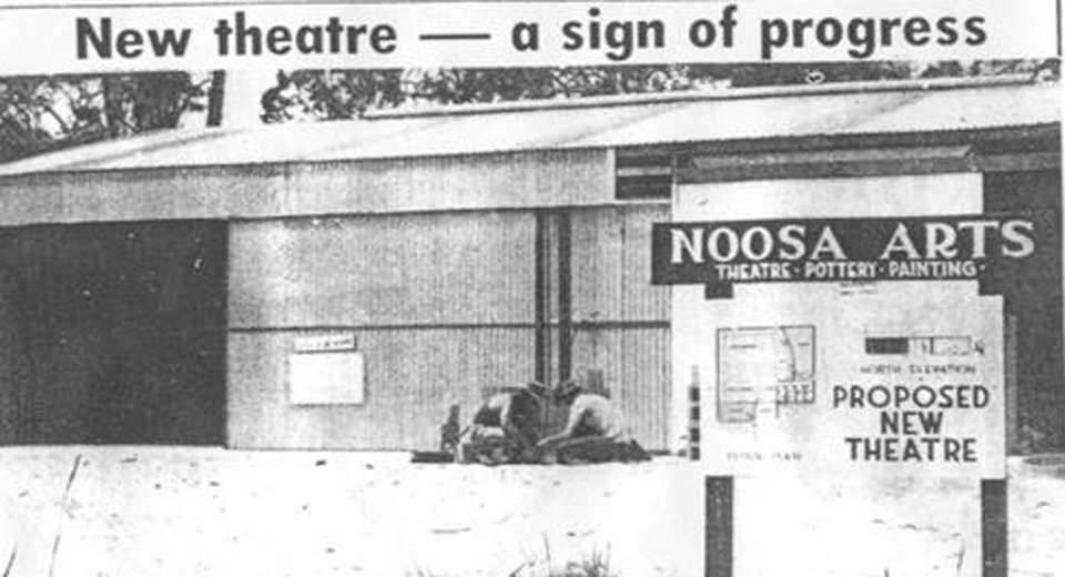 ‘Now it’s there for all to see – the new Noosa Arts signboard and, behind it, the rapidly-growing theatre.’ – Noosa News, October 1975